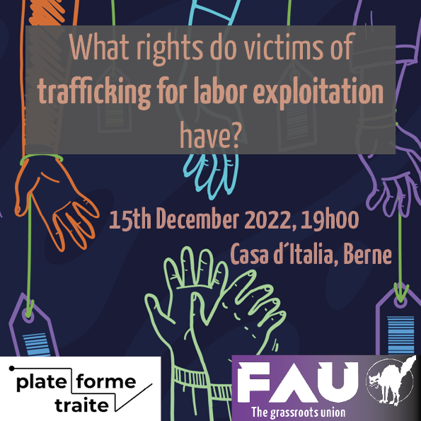 The lecture will take place on 15.12. from 19.00 in Bern and will be held by plateforme traite.