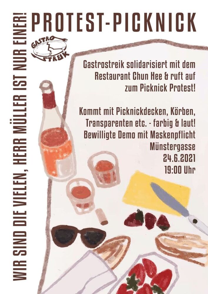 Die FAU Gastro solidarisiert sich sowohl mit dem Chun Hee, seinem nun joblosen Personal, und dem Aufruf des Gastrostreiks Bern zum Protestpicknick