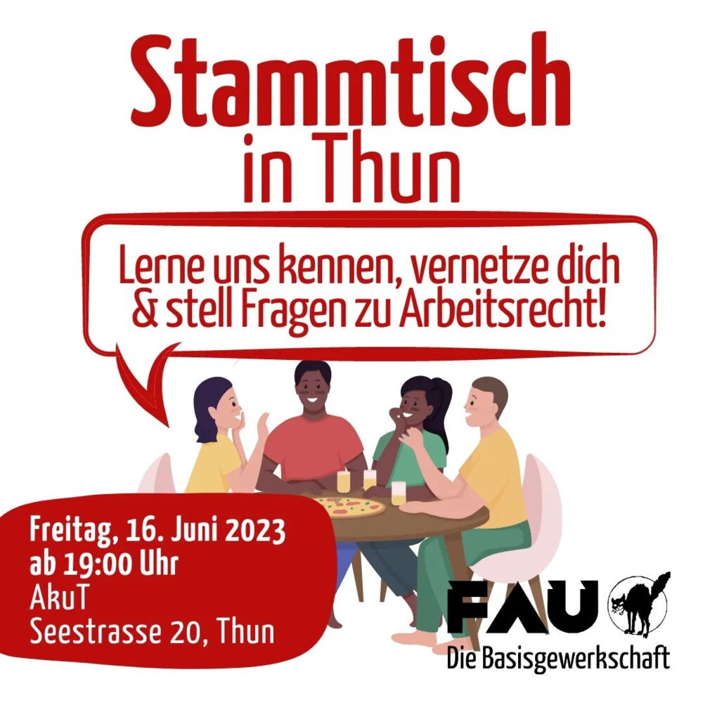 Stammtisch bedeutet, dass du als FAU-Mitglied oder als interessierte Person vorbei kommen kannst. Wir besprechen politische & alltägliche Themen und lernen uns kennen.